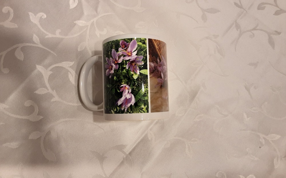 Fototassenhäferl Nr: 3 mit 2 eigenen Fotomotiven mit Safran.